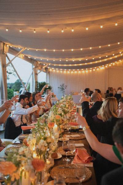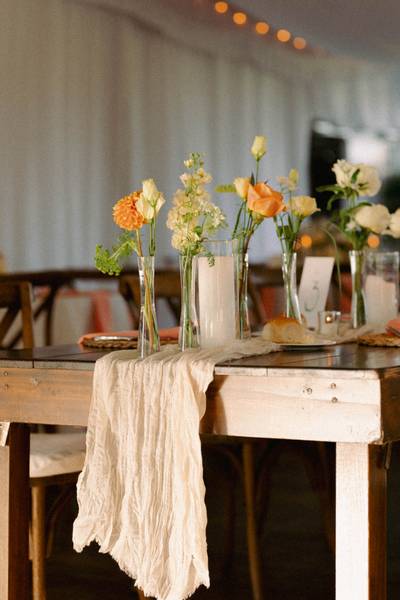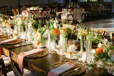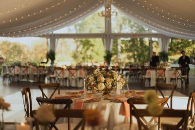 Kourtney & Tyler got married on a beautiful day in late September, celebrating under a tented reception at Saratoga National. The floral design was full of bud vases, taper candles, and details that felt like you were enjoying an intimate dinner in a Tuscan garden. The light coming into the tent right as guests transitioned from cocktail hour to reception was sheer perfection! We loved bringing K & T's vision to life and working with this warm and vibrant color palette.