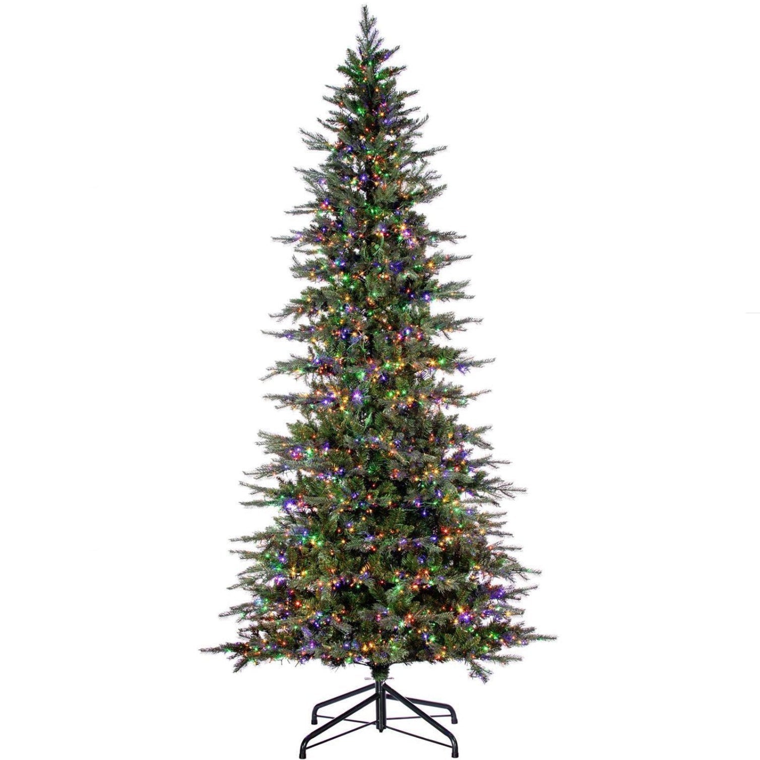 Bishop slim pine tree pre lite with 5 color changing LED lights and easy lit pole connect.