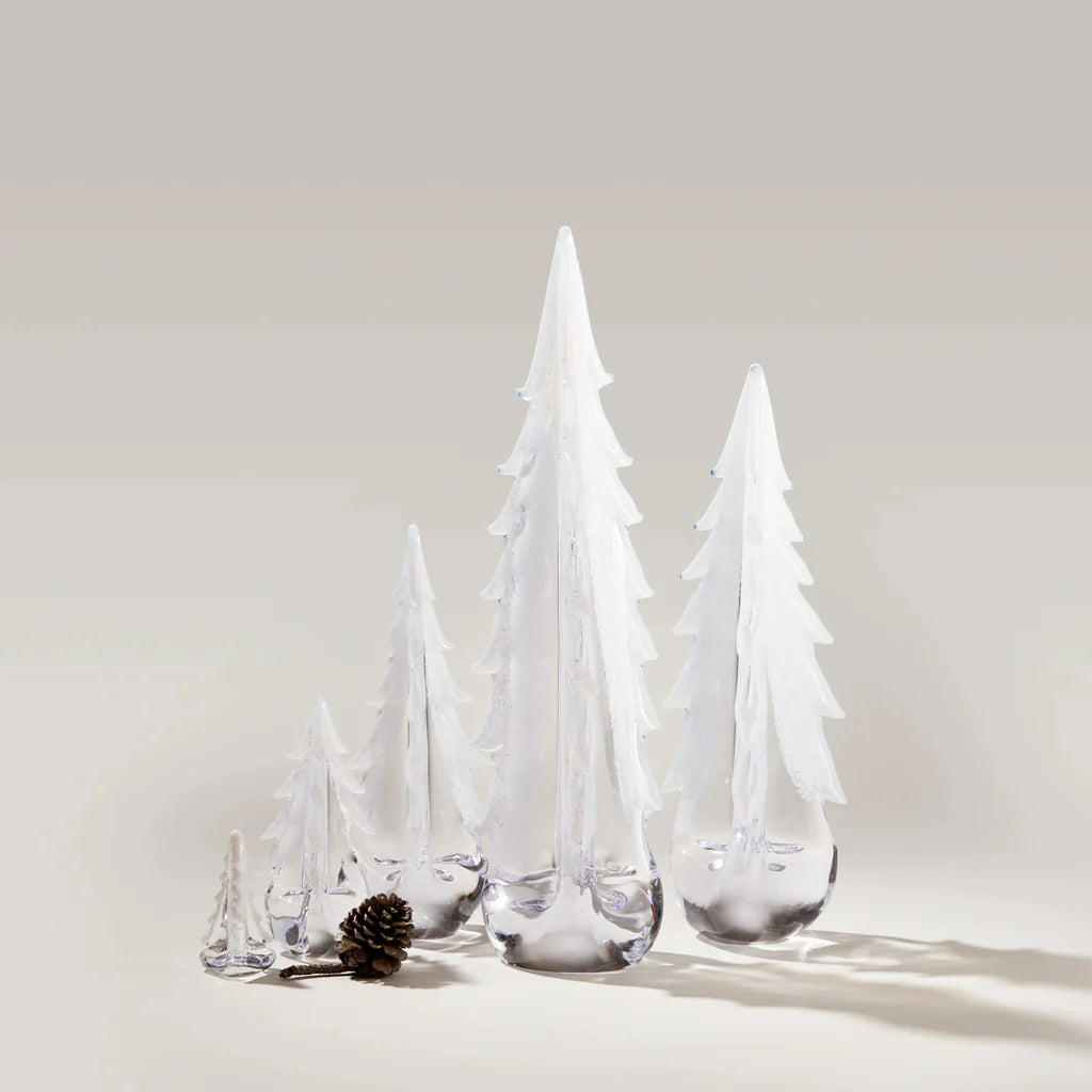 In homage to the romance of Vermont winter, our Snowy Branch Evergreens are lightly dusted in powder white. Each branch is individually carved out of molten glass, with a random play of air bubbles captured within. A textural addition to your forest – or a thoughtful gift for anyone who dreams of freshly fallen snow.