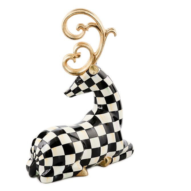 For the perfect mix of glam and classic Christmas style, look no further than the Courtly Noel Resting Deer. This elegant piece shows a deer bedecked in our iconic color-dragged Courtly Checks, complete with gold accents. Beautiful on an end table for a festive display or on the mantel nestled amongst your stockings.